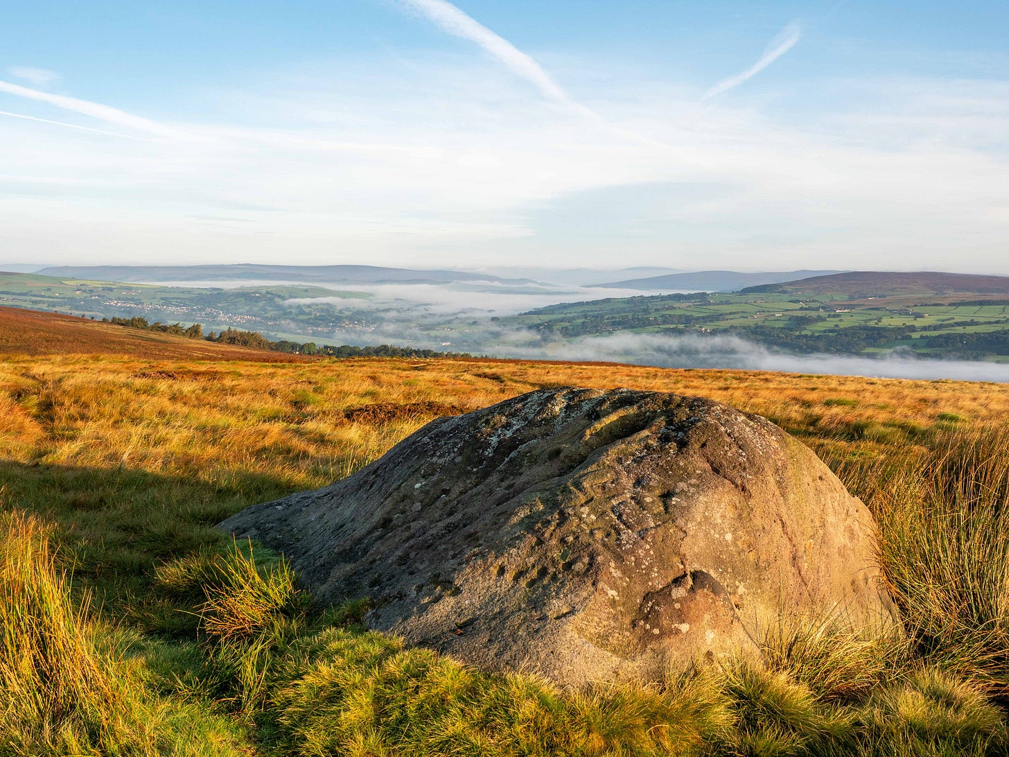 The northern scarp of Ilkley Moor looks down on the River Wharfe, which emerged from the Yorkshire Dales National Park a short distance upstream. You take in the view of this part of northern England from a seat of a hard, rough sandstone, and behind you, to the south, the moorland plateau has one of the richest concentrations of prehistoric rock carvings and monuments in Europe. With a few exceptions, most are small. All are enigmatic. The stones are convenient perches for the birds that nest there - curlew, golden plover, skylark, meadow pipit, stonechat and more. Before the stones were carved, the moor was a mosaic of open, patchy woodland with a rich ground cover of heather, bilberry, crowberry and other woody shrubs. After a few thousand years of human activity, trees are returning to the steeper slopes and sheltered gills, still rich in bilberries and the birds of the valley follow them.